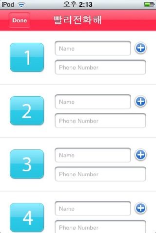 전화번호를 저장하는 화면은 오픈당시에는 직접입력만 할 수 있도록 매우 불편하게 되어있었지만, 다음 버전을 업데이트 하면서 연락처의 정보를 가져와서 설정할 수 있게 변경되었다.