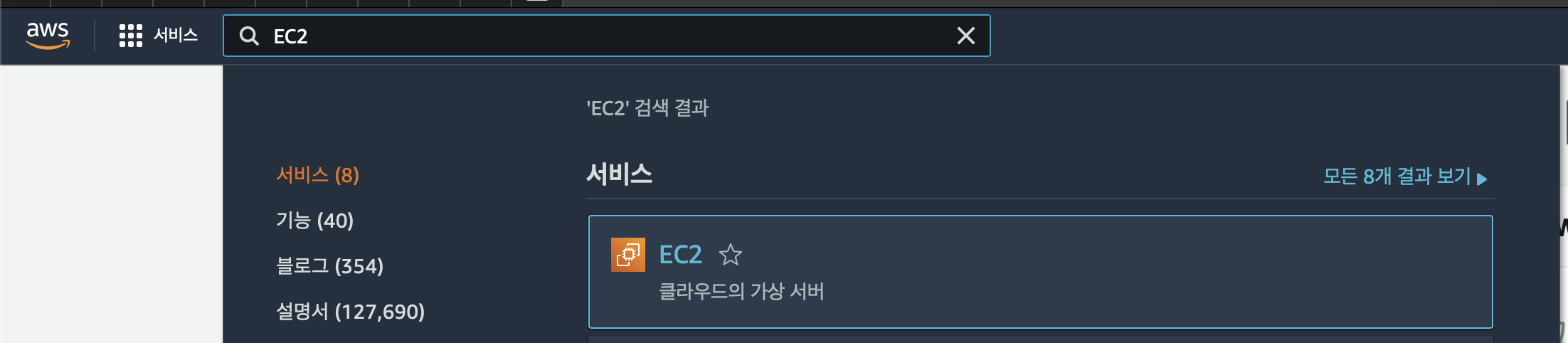 로그인이 완료되면 화면에 좌측 상단 검색 영역에 “EC2”라고 입력한다.
