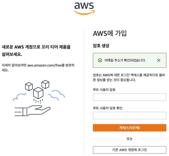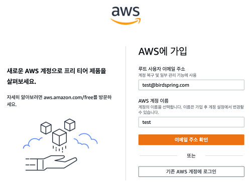 가입할 이메일과 이름을 입력하고 이메일 주소 확인을 클릭한다.