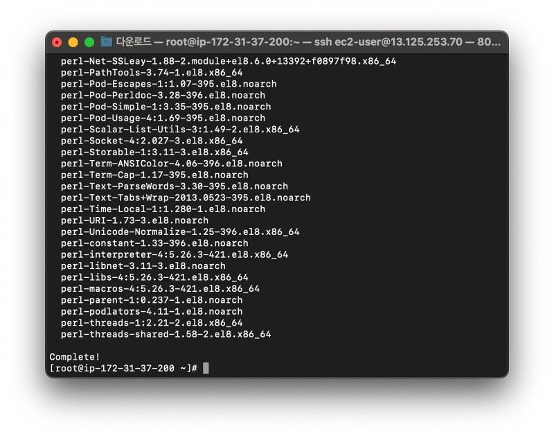 마지막에 Complete 라고 있는거 보니 잘 설치 된 것 같다.