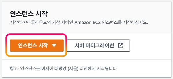 인스턴스 시작이라는 영역이 있다. 표시해 놓은 것처럼 인스턴스 시작 버튼을 클릭한다.