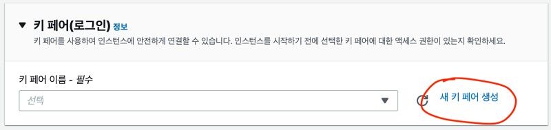키페어 생성 버튼을 클릭하면 자동으로 파일이 다운로드 되고, 키페어 영역에도 생성된 키페어가 자동으로 설정된다.