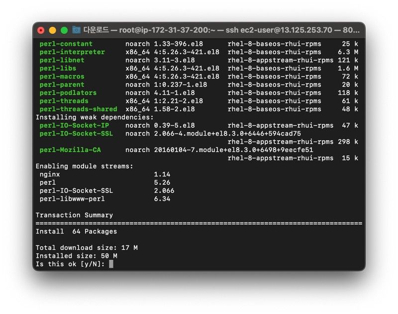 아직 접속을 끊지 않았다면, 루트로 접근해서 yum으로 nginx설치를 진행해본다.