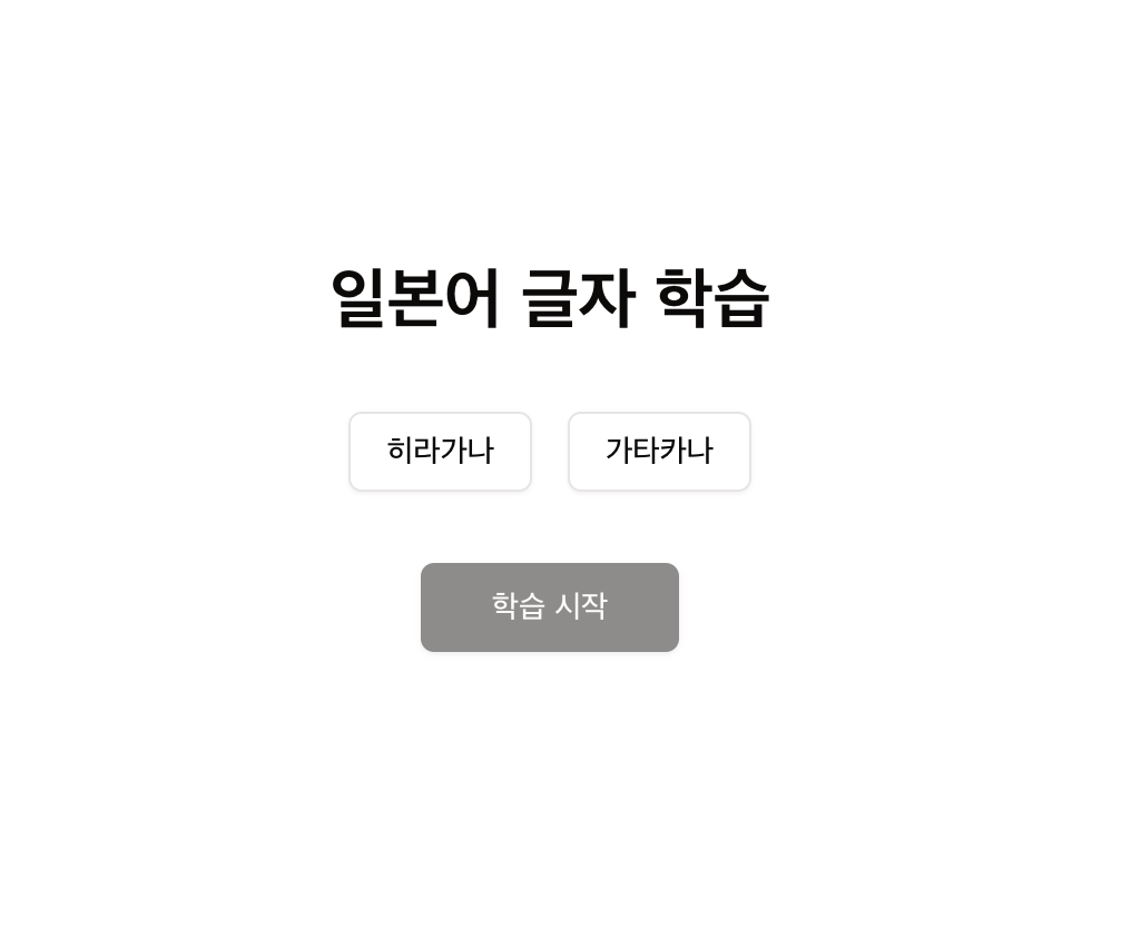 메인화면에는 히라가나와 가타카나를 선택하는 버튼과 시작버튼이 있다.