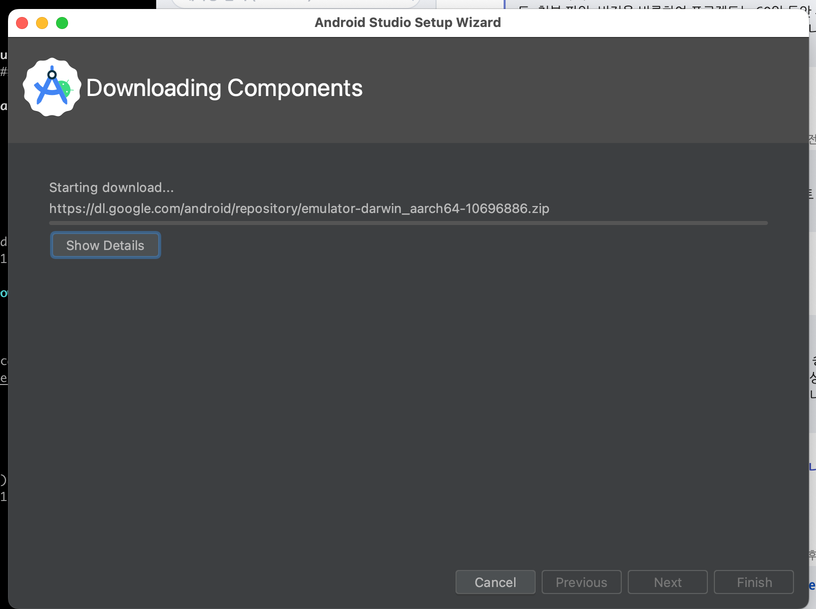 본인 맥에 맞는 버전을 내려받아서 설치한다. <안드로이드 스튜디오 링크>